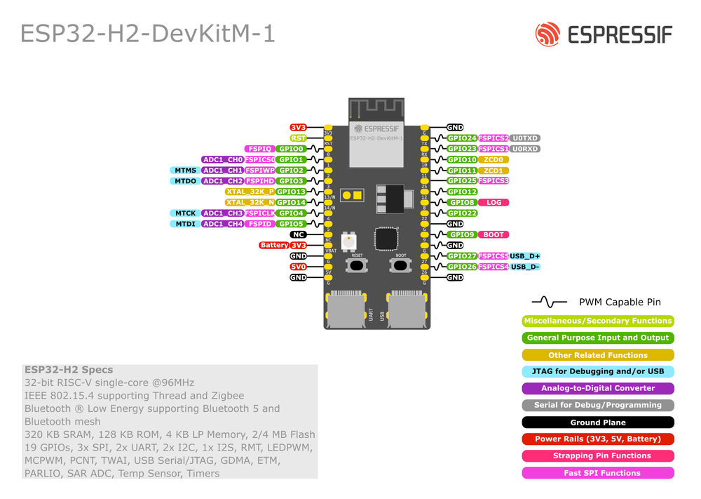 Схема распиновки Espressif ESP32-H2-DevKitM-1