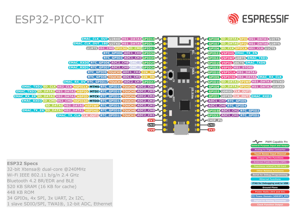 Полная справка по выводам Espressif ESP32-PICO-KIT-1