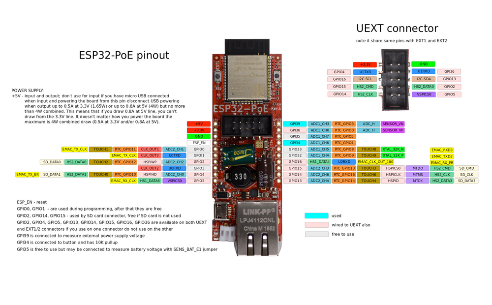 Схема распиновки OLIMEX ESP32-PoE